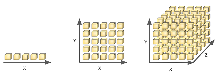 위 그림에서 오른쪽으로 갈수록 차원이 높아지는데, 차원이 커질수록 설명공간이 지수적으로 늘어나는 것을 확인할 수 있다. 샘플 수가 동일하다면 설명 공간이 늘어남에 따라 데이터 간 거리는 멀어지게 되고, 설명할 수 없는 빈 공간이 증가하게 된다.