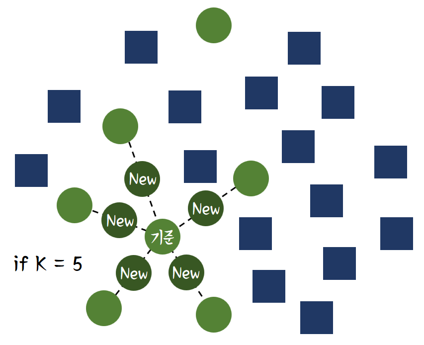 - 소수 범주 중에서 해당 데이터와 가까운 k개를 선택한다.