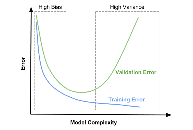 또, 머신러닝 모델이 복잡해질수록 편향은 감소하고, 분산은 증가하는 경향을 보이게 된다.