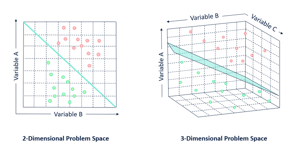 오른쪽 그림처럼 3차원 형태의 자료에서는 선이 아닌 평면(Plane)으로 집단을 구분할 수 있다.