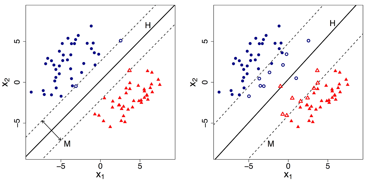 * 서포트 벡터 : 초평면에 가장 가까이 위치한 데이터 포인트들