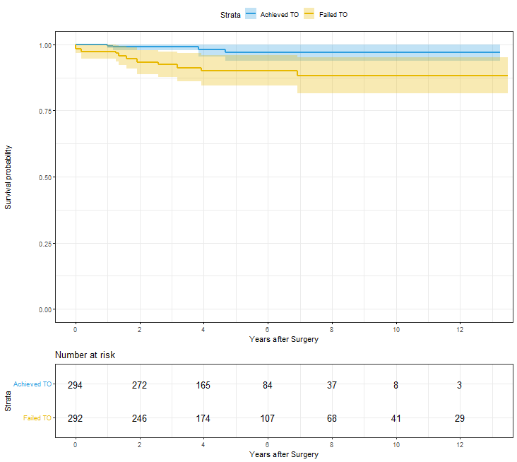legend.labs = c('Achieved TO',"Failed TO"), risk.table.height = 0.25,