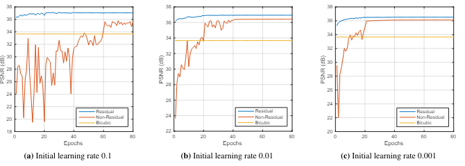 정리해보자면, 아주 깊은 네트워크 모델에서는 수렴률이 매우 낮아서 학습이 어려워질 수 있는데, VDSR모델에서는 Residual-learning과 매우 높은 Learning rates를 이용해서 깊은 네트워크을 빠르게 최적화하고, 이때 발생할 수 있는 기울기 소실(Vanishing Gradient) 문제를 Gradient clipping 방식으로 해결했어요. 또 여러 scale에 대해 학습을 진행했을 때 single scale로 학습된 network보다 더 좋은 성능을 보인다는 것도 보여주었죠.