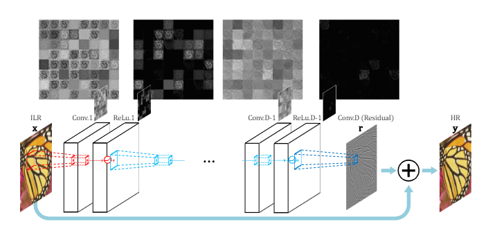 interpolated lower resolution(ILR) image를 input으로 사용해서 image details(residuals)를 예측하게 돼요.